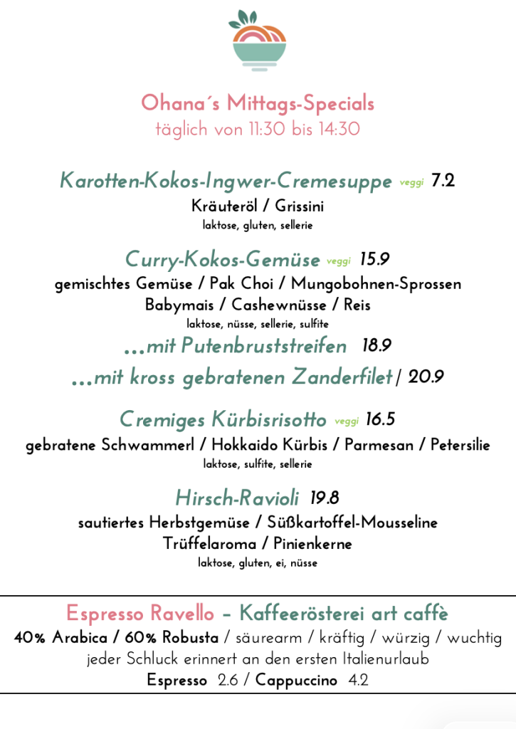 Ohana´s Mittags-Specials