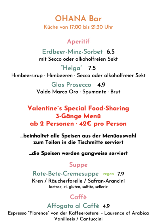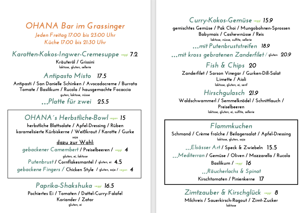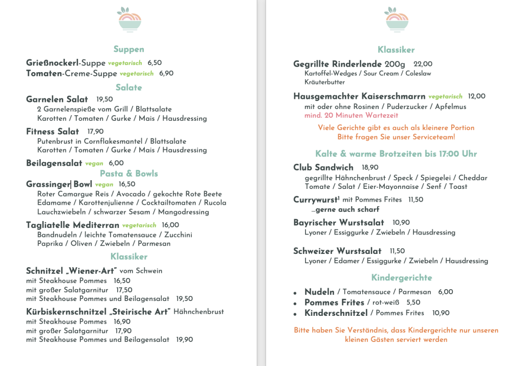 Auszug aus der Mittagskarte