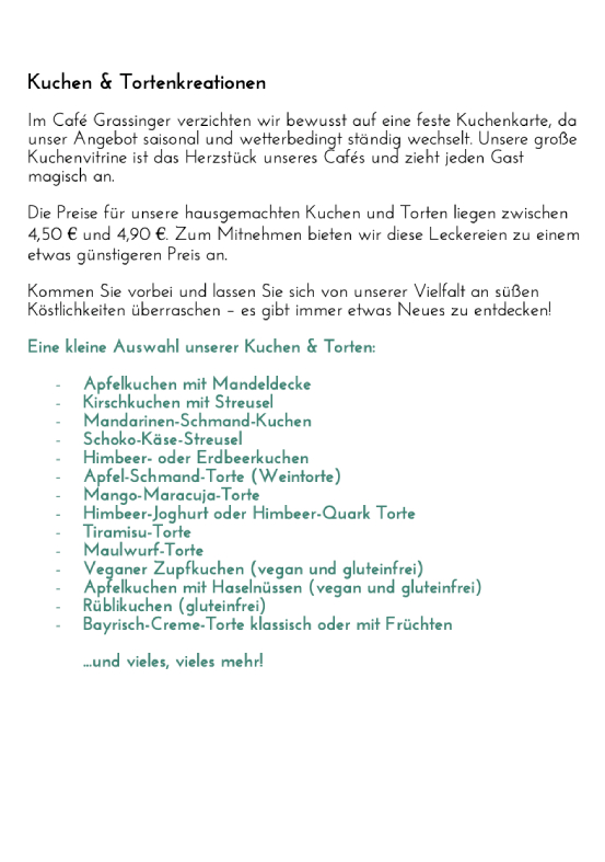 Auszug aus unserer Kuchenauswahl & Eis